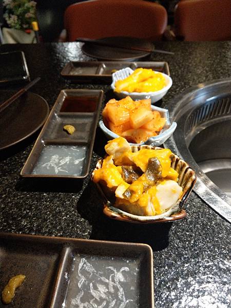 相對實惠的價格,再這裡就可以享用到平常不容易親近的和牛。最優惠價格是580元的商業午餐,這次我們點了3分1280元的套餐,本想再額外單點其他和牛部位,但是單點和牛並不是每日都有的提供,若預計去嘗試要先考慮以套餐為主。除了產地外,也會把牛區分成,上,中,下部共23各部位,1280以上的套餐會提供上肉部位但並無法指定特定部位。產地目前似乎也是每月不同無法選擇,這次到訪,提供的是A5 BMS 12級的鳥取和牛油酸55,鳥取牛的名氣氣再日本26個產區中,雖然不是最高,但鳥取牛卻是日本和牛界的始祖。這樣等級的更是只占了2成。